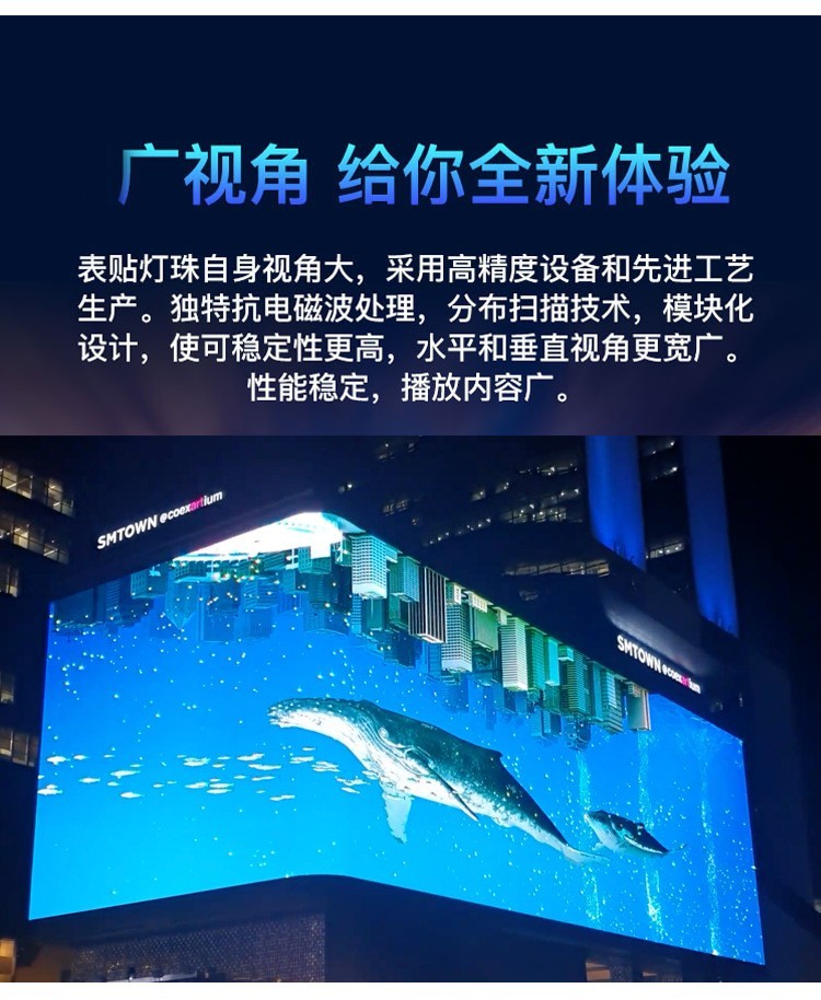 本產品為優色專顯戶外系列前維護防水產品,采用 320x160mm 防水模塊, 搭配 960x960mm 標配箱體,可實現模組前維護。該系列產品適用于戶外各類不同環境亮度的應用領域,具有高亮高對比、畫面絢爛真實、防護能力高、耐候性優良、使用壽命長等特點。