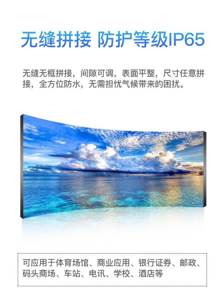 本產(chǎn)品為優(yōu)色專顯A 系列戶外前維護(hù)防水產(chǎn)品,采用 320x160mm 防水模塊, 搭配 960x960mm 標(biāo)配箱體,可實(shí)現(xiàn)模組前維護(hù)。該系列產(chǎn)品適用于戶外各類不同環(huán)境亮度的應(yīng)用領(lǐng)域,具有高亮高對(duì)比、畫面絢爛真實(shí)、防護(hù)能力高、耐候性優(yōu)良、使用壽命長(zhǎng)等特點(diǎn)。
