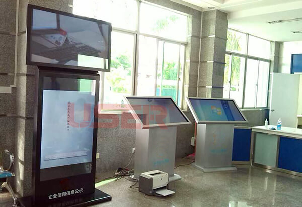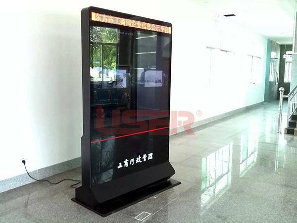 海南省東方市工商局落地廣告機_雙屏廣告機_斜面觸摸一體機案例展示