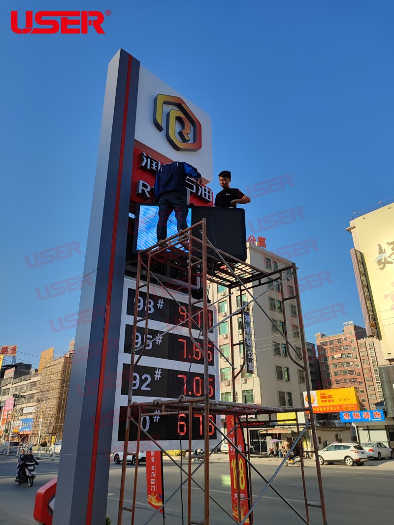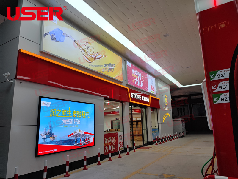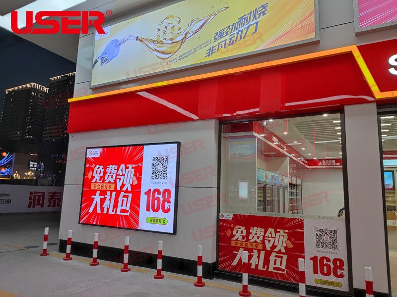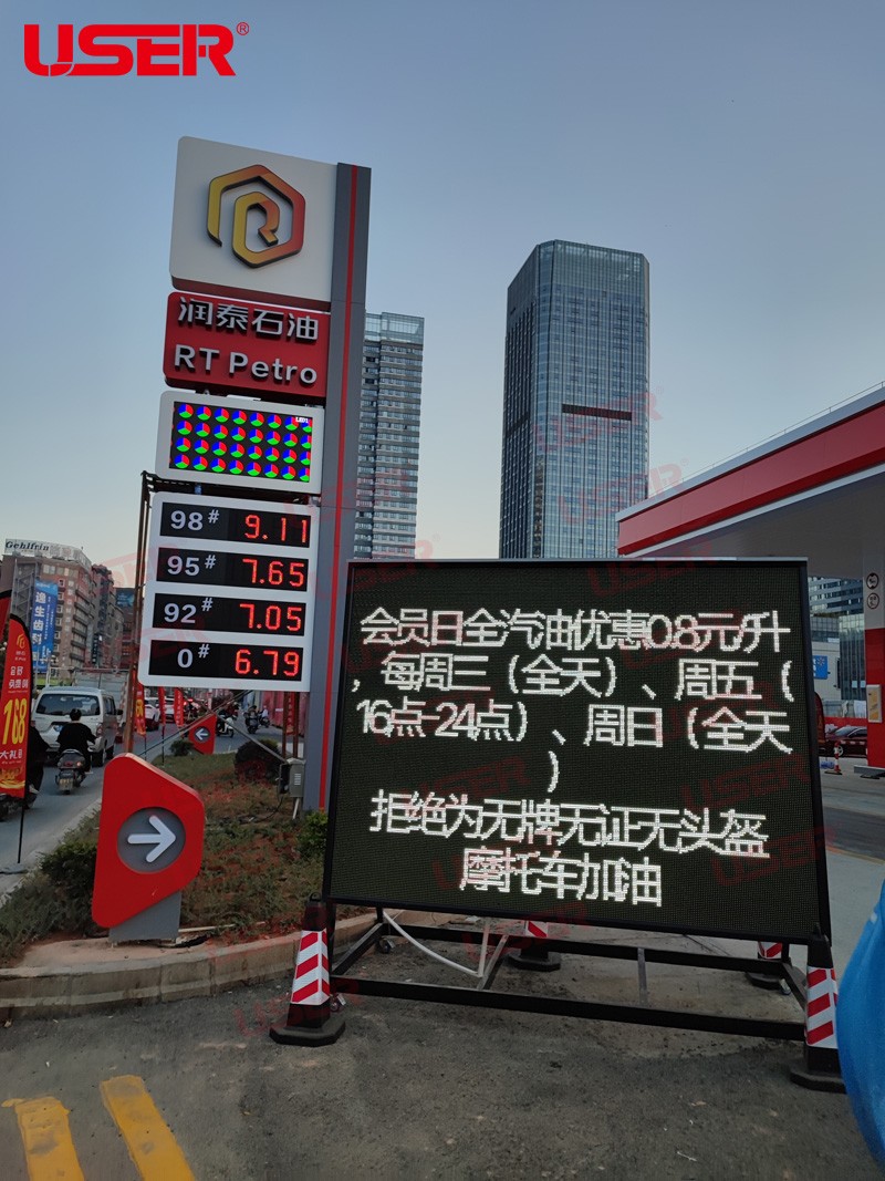 揭陽市潤泰加油站采用優色專顯P2高刷全彩led顯示屏全套整體解決方案