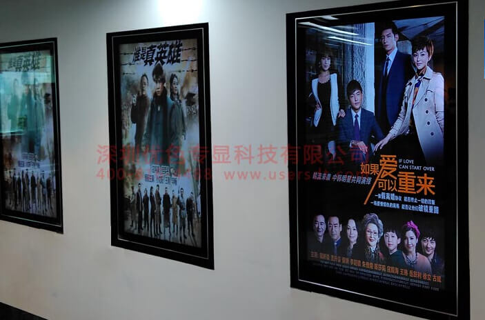 優(yōu)色品牌進駐影視媒體行業(yè),將是一個新的擴展領域,項目采用優(yōu)色“液晶廣告機機”,用來顯示電影海報,宣傳等。安裝精美,播放畫質高清,深受客戶喜歡。