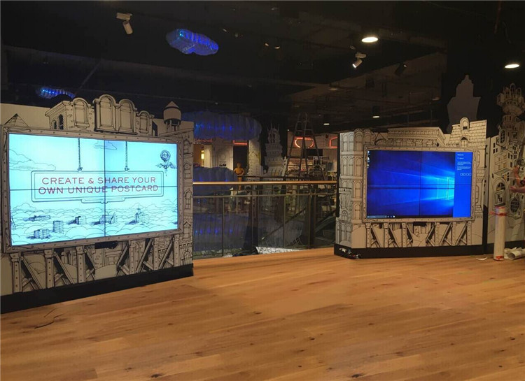 →上海驢媽媽旅游體驗店46寸3*3拼縫3.5mm液晶拼接屏項目