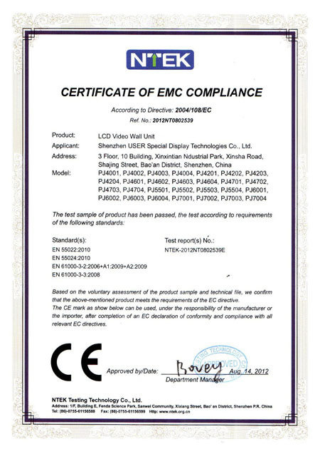 CE認證歐盟認證(液晶拼接 EMC傳導輻射證書)